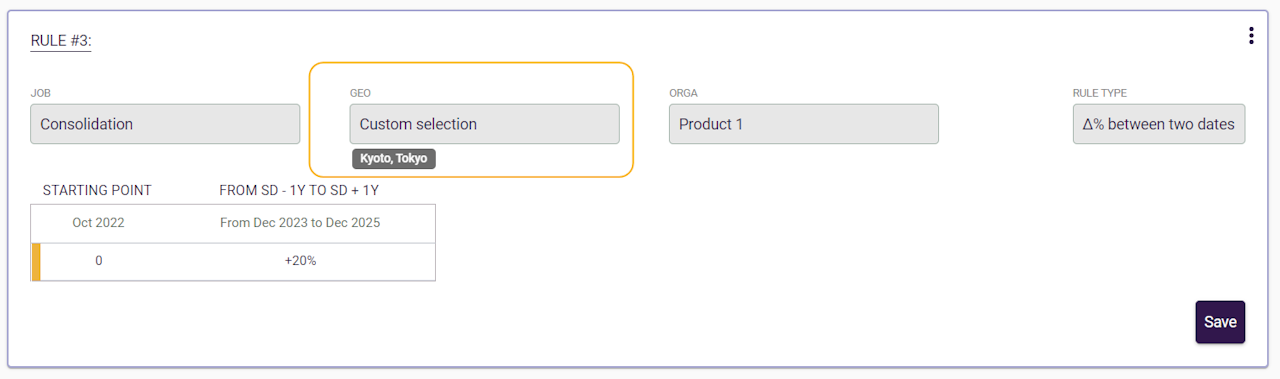 If I want Osaka to be impacted as well, I need to modify the perimeter of the rule.