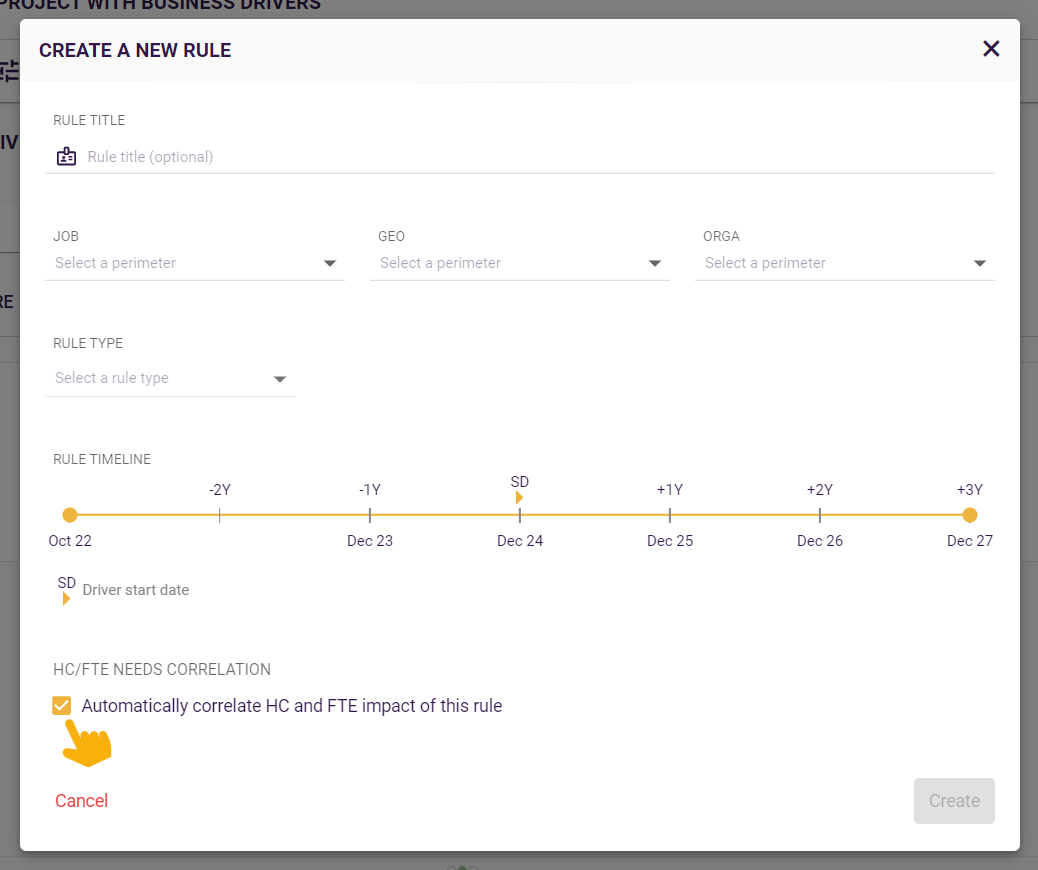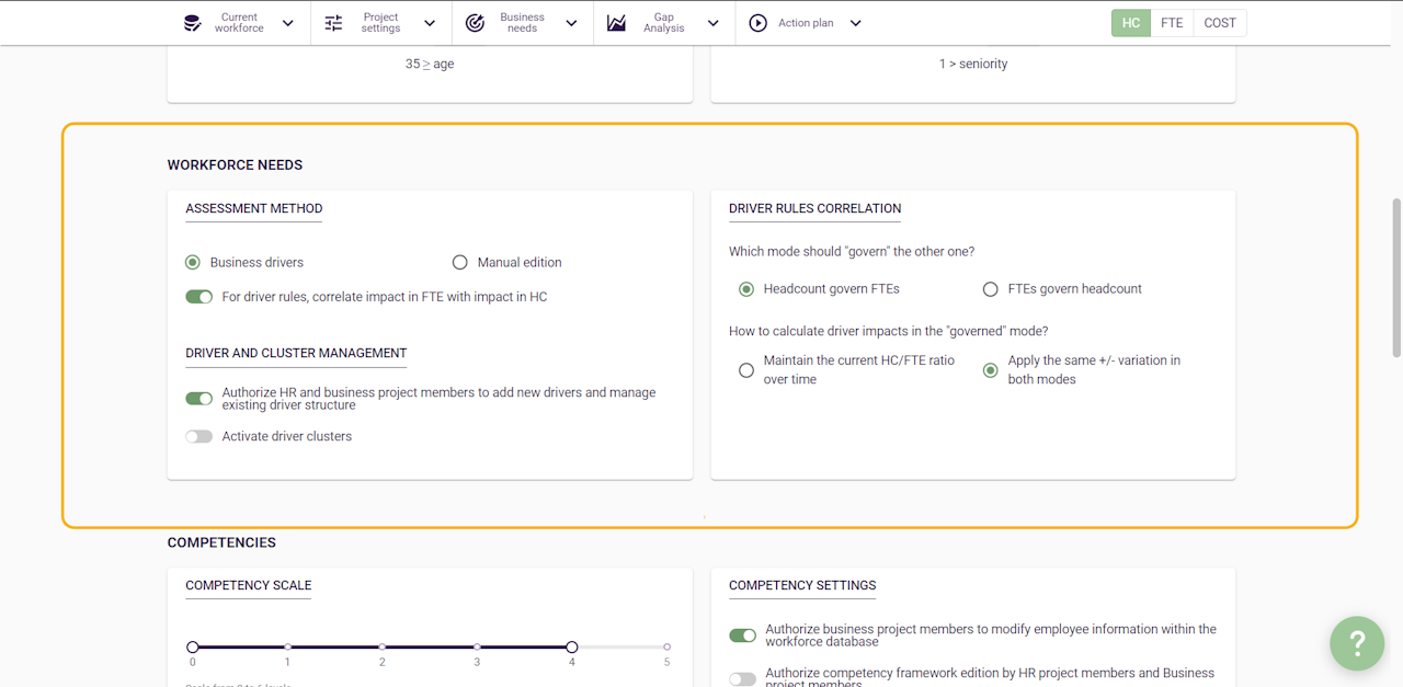 the option to correlate impact in FTE with impact in HC is activated for each driver rule