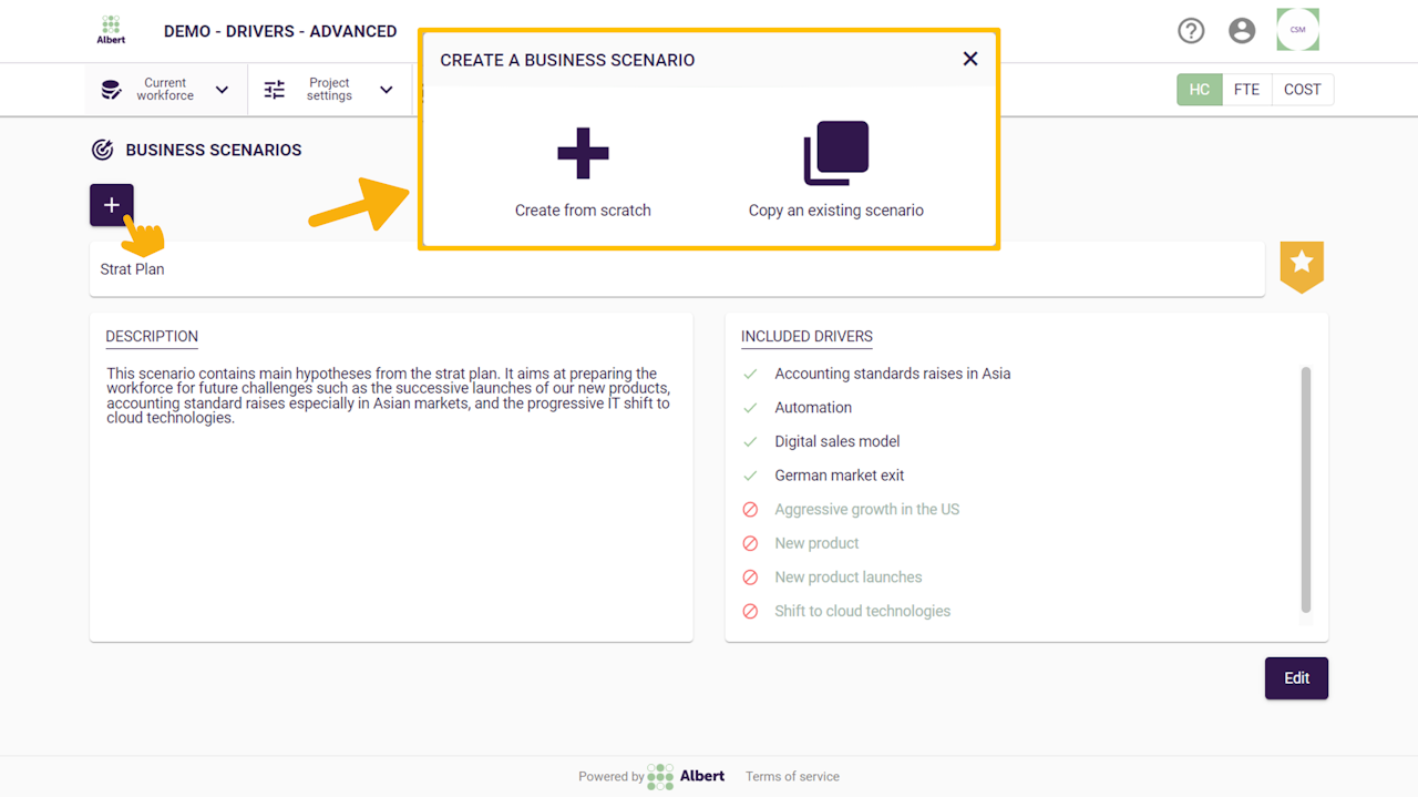 Either create a scenario from scratch or copy an existing one
