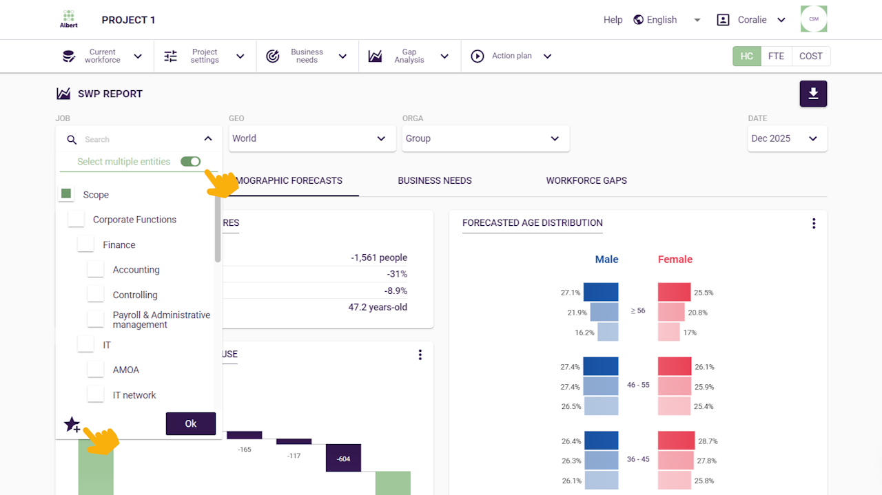 Within the perimeter dropdown menu, it is possible to select multiple entities and display the analysis for a custom selection.