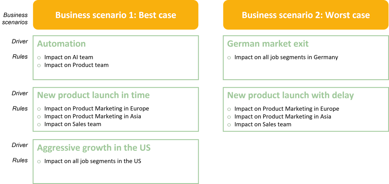 A business scenario is built by adding together the different drivers.
