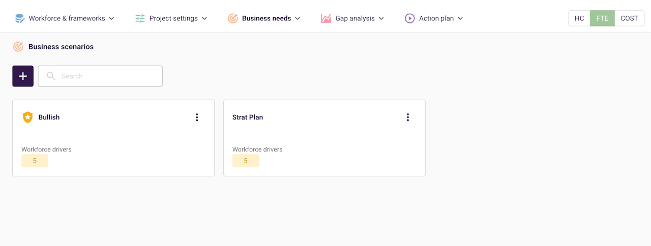 Business scenarios are meant to define different workforce needs and competency needs according to different business hypotheses.