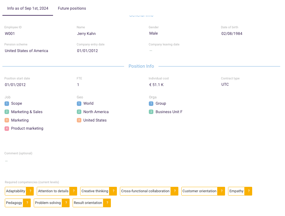 Whatever the reason (new exercise, new assessments, errors, etc.), it is entirely possible to reset the current levels for additional competencies of the employees involved in the project and replace them with a “?"