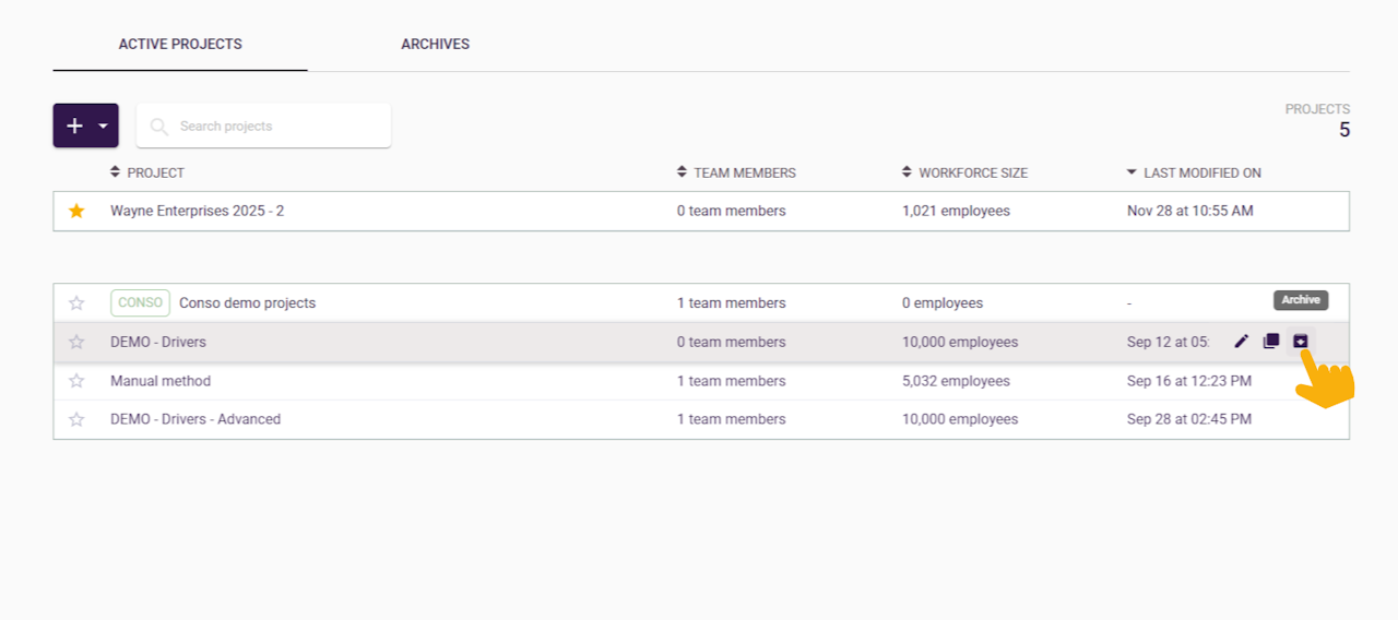 How to archive projects?